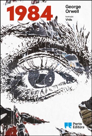 • Capa do livro 1984 de George Orwell com ilustração de um olho em preto e branco