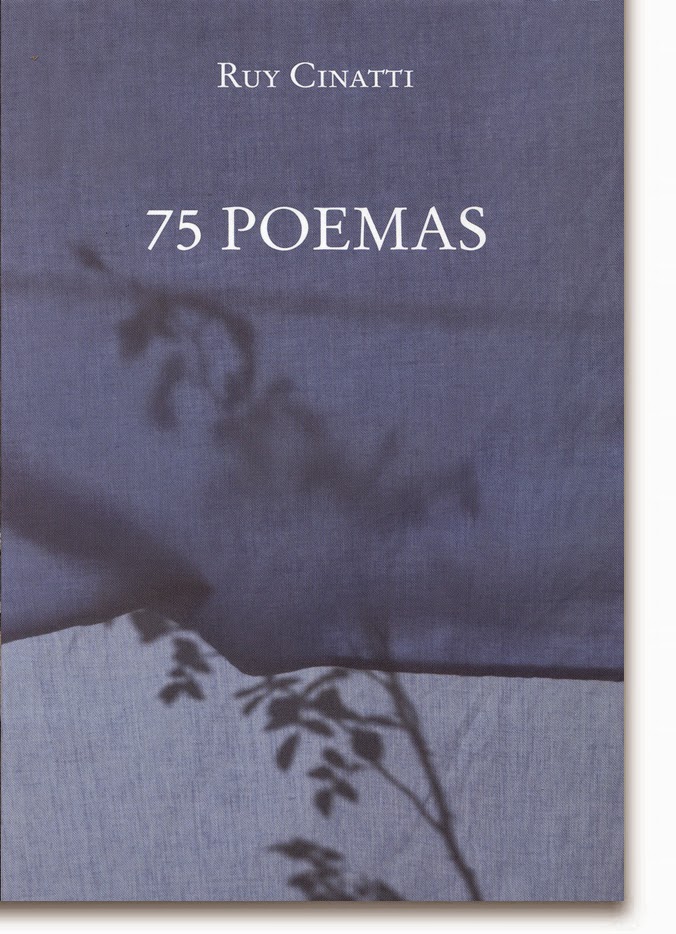Capa de livro azul e lilás com título 75 POEMAS e nome do autor RUY CINATTI