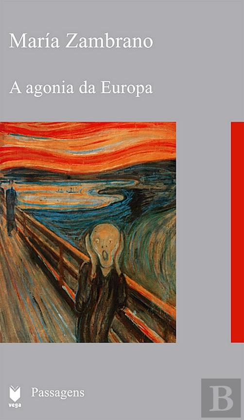 • Capa de livro 'A agonia da Europa' com pintura 'O Grito' ao centro e texto em branco no fundo cinzento.
