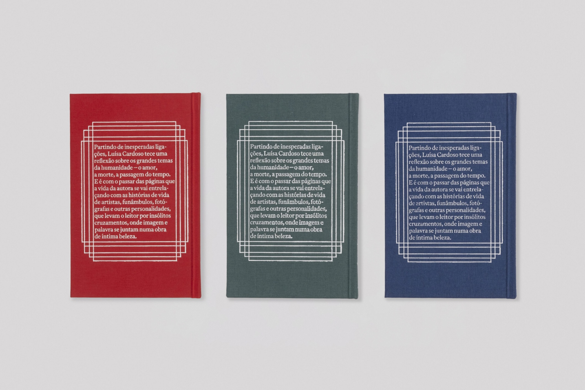 Este livro tem uma tiragem de 750 exemplares, com três cores de capa diferentes (vermelho, azul e verde), com 250 exemplares cada um. Tem, também, capa dura em tecido e os laterais pintados.