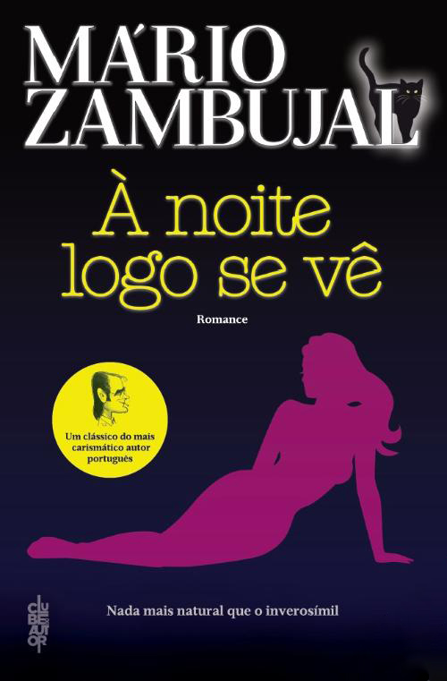 • Capa do livro 'À noite logo se vê' de Mário Zambujal com silhueta rosa de mulher reclinada e selo amarelo