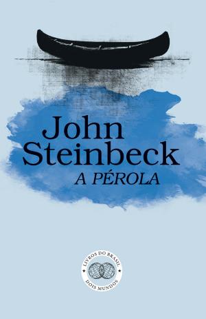 • Capa de livro azul com canoa preta e texto John Steinbeck A PÉROLA