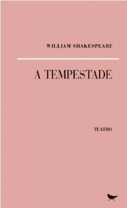 Capa de livro rosa com texto preto A TEMPESTADE de William Shakespeare.
