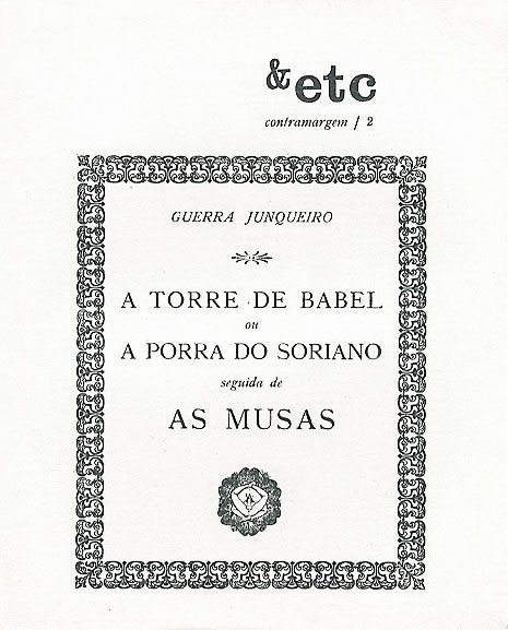 A Torre de Babel ou A Porra do Soriano seguido de As Musas 20,00 € Desconto de %. IVA incluído. Partilhar O produto encontra-se sem stock. A Torre de Babel ou A Porra do Soriano seguido de As Musas Guerra Junqueiro &etc, Novembro 1979