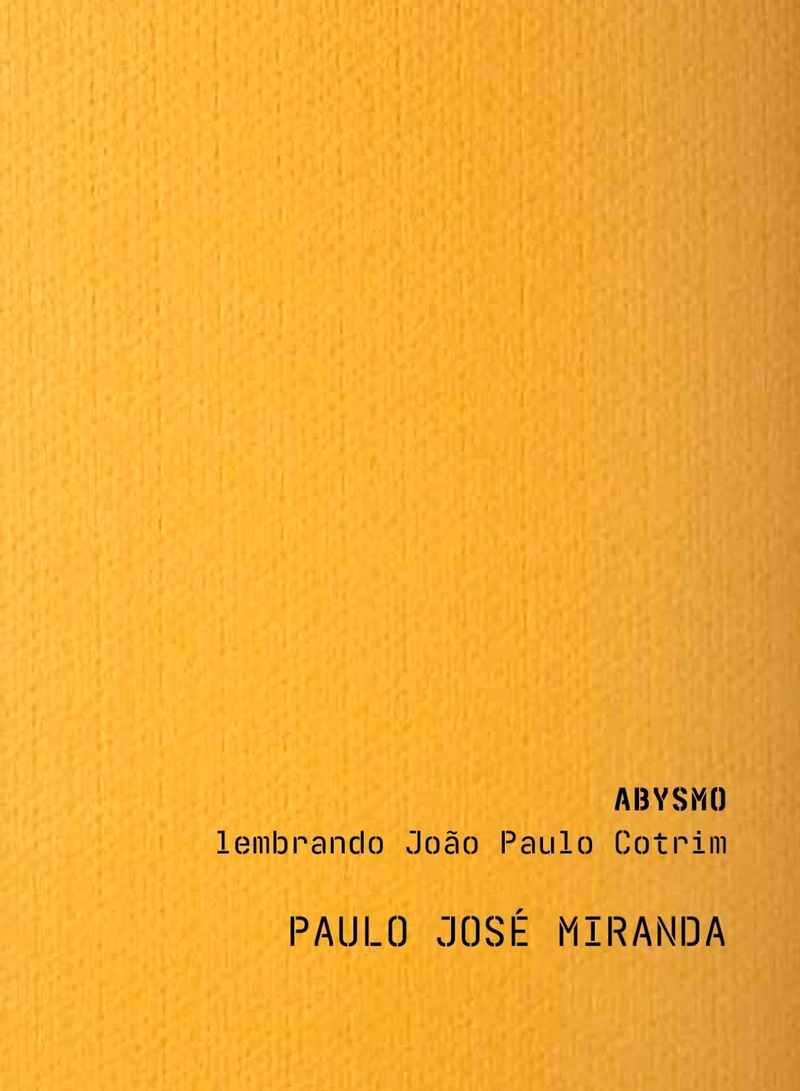 Abysmo - lembrando João Paulo Cotrim 7,00 € Desconto de %. IVA incluído. Partilhar Comprar Contactar Abysmo - lembrando João Paulo CotrimPaulo José Miranda (poesia) nova mymosa, 2022 Tags paulo josé mirandaPoesianova mymosa Características
