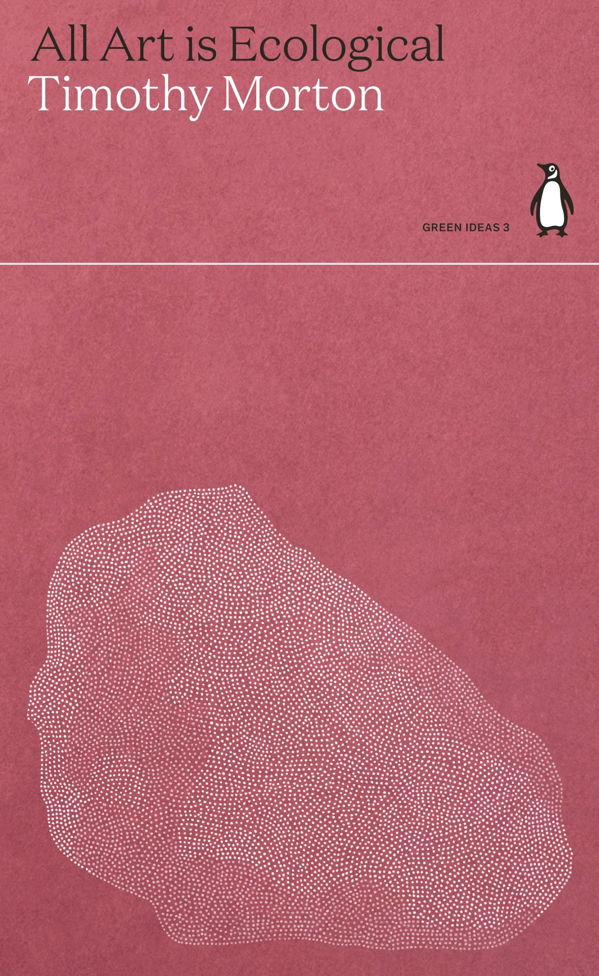 • Capa de livro 'All Art is Ecological' de Timothy Morton cor de rosa com desenho abstrato branco