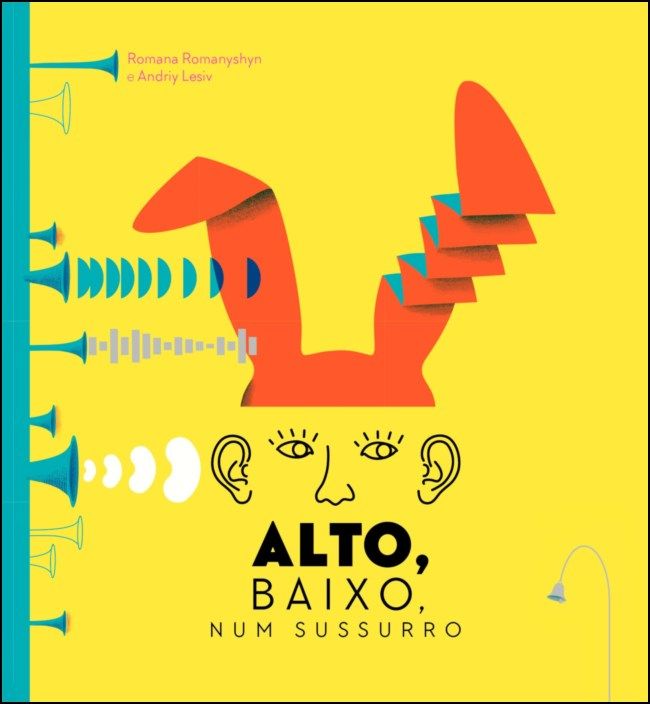 • Capa de livro colorida com título ALTO, BAIXO, NUM SUSSURRO e ilustração abstrata