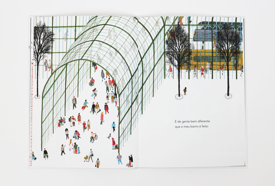 Neste livro somos levados pela mão de um menino que mora num bairro como tantos outros. Ele quer falar-nos de amigos, amigos do peito. Para isso leva-nos pelas ruas do seu bairro, por sinal um bairro muito parecido com o nosso, onde encontramos uma escola, um bar, uma casa à esquina, um jardim, prédios… Mas estas ruas e casas não são a única coisas que nos parecem familiares, também a voz do menino nos soa familiar. E os amigos de quem fala parecem lembrar-nos os nossos, porque todos os temos e todos brincamos com eles num bairro qualquer, esse espaço comum que nos recorda que somos feitos de muitos amigos e sítios, e por isso algo de bom acontece quando os revemos. Um texto poético de Cláudio Thebas maravilhosamente interpretado e amplificado nas belíssimas ilustrações de Violeta Lópiz.