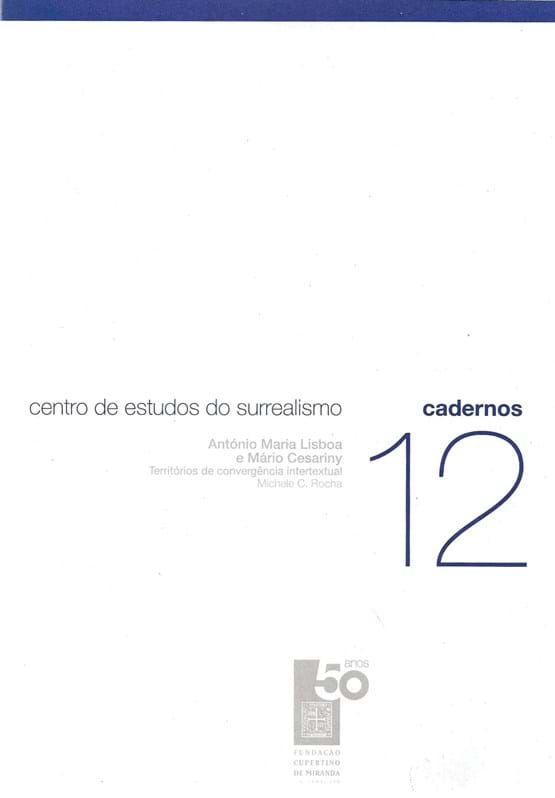 ANTÓNIO MARIA LISBOA E MÁRIO CESARINY: TERRITÓRIOS DE CONVERGÊNCIA INTERTEXTUAL 7,00 € Desconto de %. IVA incluído. Partilhar Comprar Contactar ANTÓNIO MARIA LISBOA E MÁRIO CESARINY: TERRITÓRIOS DE CONVERGÊNCIA INTERTEXTUALCADERNO 12 Michele Coutinho Rocha Dir. Perfecto E. CuadradoFundação Cupertino de Miranda Centro de estudos do Surrealismo201360 p.