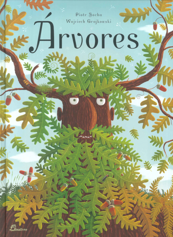 • Capa de livro 'Árvores' com figura feita de ramos e folhas