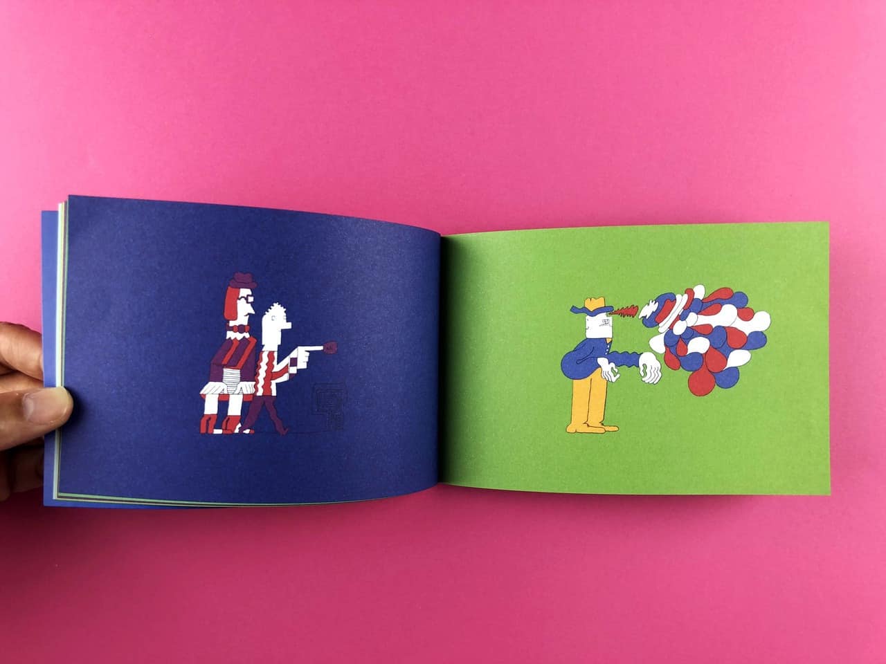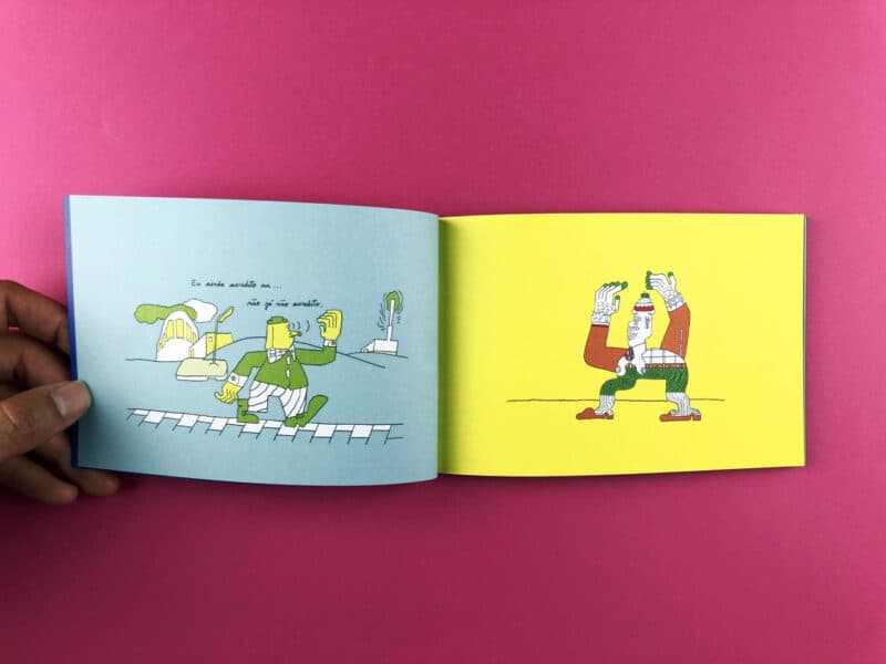 Nevertheless, André Ruivo’s characters, with a self-destructive and deceptive sense of humour, are moving characters. So being, they are closer to the logic of urban dromology of Baudelaire’s flâneur. But they wander in an empty city, and not one full of people, a Sunday city and not an anonymous Boulevard or a Nevsky crowded street. In these drawings there is also a Pop drift: in the colours, the human bodies, the gesture’s theatricality, its props, the city’s buildings… everything indifferently perspectived, geometrized or planned, everything exclusively garish and musically rhythmic– memories of a certain and psychedelic submarine. Finally, in these drawings, it seems as if nothing is going on. Or almost nothing. Or nothing important. There is, after all, something. We can even tell very important things are going on.