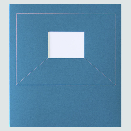 • Quadrado de papel azul com recorte quadrado e linhas de dobra claras