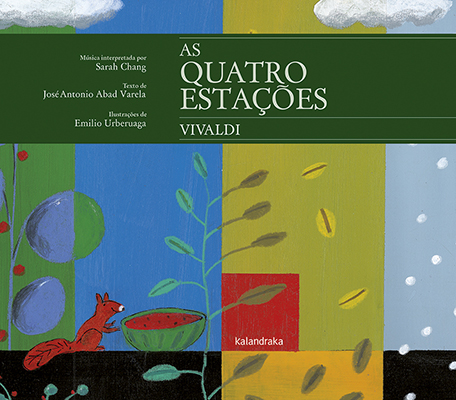 • Capa de livro com ilustrações coloridas e texto AS QUATRO ESTAÇÕES VIVALDI