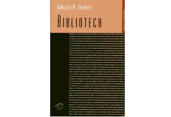 • Capa de livro 'Biblioteca' de Gonçalo M. Tavares em castanho e preto com texto branco pequeno.