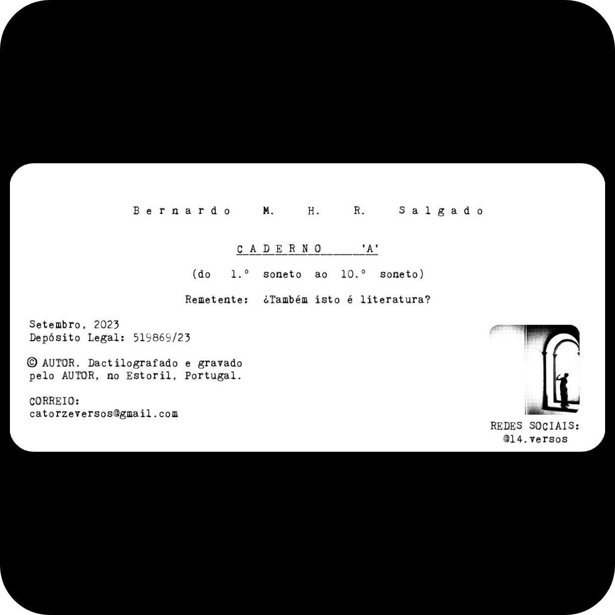 Caderno B - Bernardo Salgado 3,50 € Desconto de %. IVA incluído. Partilhar O produto encontra-se sem stock. CADERNO BBernardo M. H. R. Salgado (envelope + desdobrável com 10 sonetos) Catorze Versos, 2023 Tags bernardo salgadopoesia portuguesa2023catorze versos14 versos Características