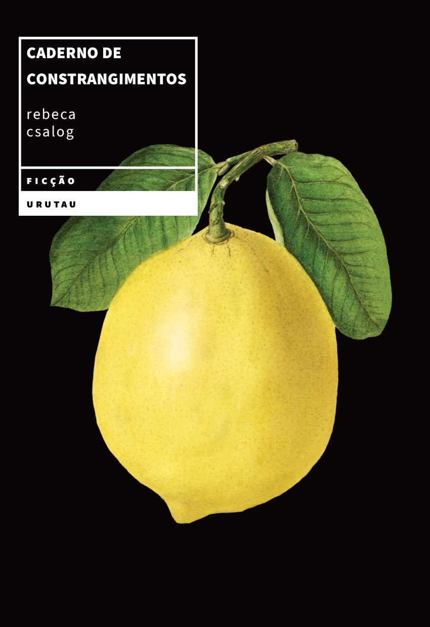 Capa de livro preta com um limão amarelo e folhas verdes e texto branco