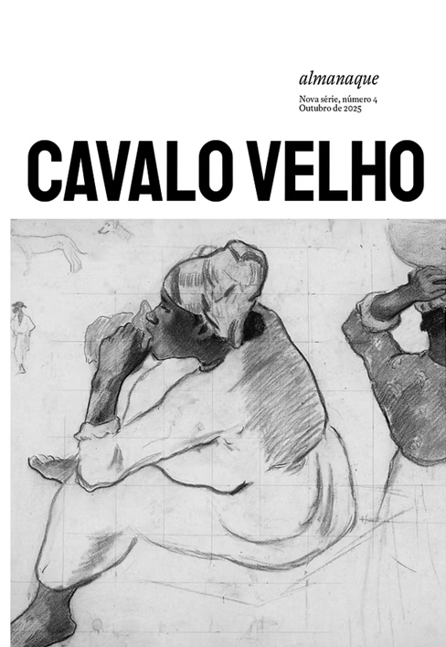 • Capa do almanaque CAVALO VELHO com ilustração a carvão de pessoa sentada