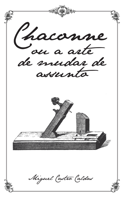 Capa de livro 'Chaconne ou a arte de mudar de assunto' com ilustração e decoração clássica