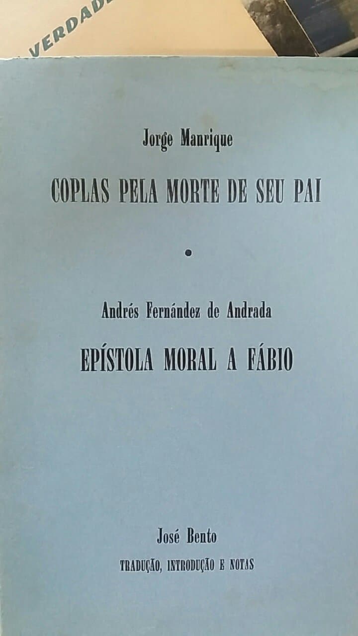 Coplas pela morte de seu pai ; Epístola moral e Fábio 8,00 € Desconto de %. Partilhar O produto encontra-se sem stock. Coplas pela morte de seu pai ; Epístola moral e FábioJorge Manrique ; Andrés Fernandez de Andrada ; trad., int. e notas de José Bento Publicação: Lisboa : Do autor : Assírio & Alvim [distrib.], 1986
