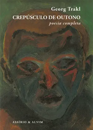• Capa de livro com pintura abstrata de rosto humano em tons escuros, texto Georg Trakl CREPÚSCULO DE OUTONO poesia completa