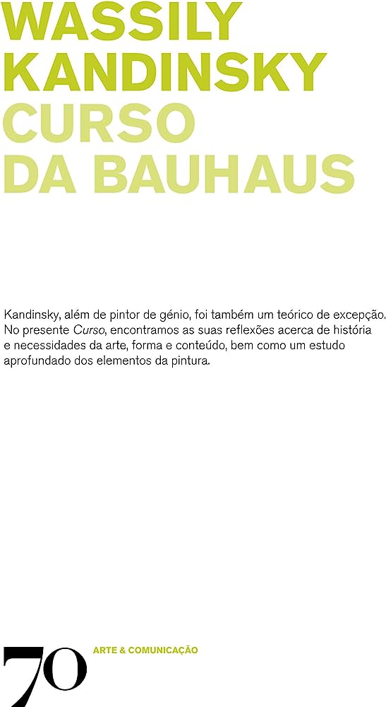 • Capa de livro com texto 'WASSILY KANDINSKY CURSO DA BAUHAUS' em amarelo-esverdeado e descrição em preto sobre fundo branco
