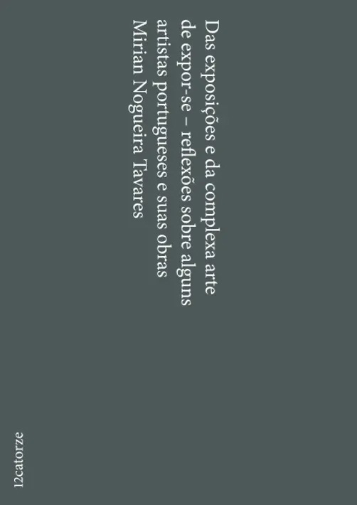 Das Exposições e da Complexa Arte de Expor-se 3,00 € Desconto de %. IVA incluído. Partilhar Comprar Contactar Das Exposições e da Complexa Arte de Expor-seMirian Nogueira Tavares 64 pp. 113 x 159 x 7 Humus, Setembro 2020 ISBN: 9789897555312 Tags mirian nogueira tavares12catorzeHúmusarte Características