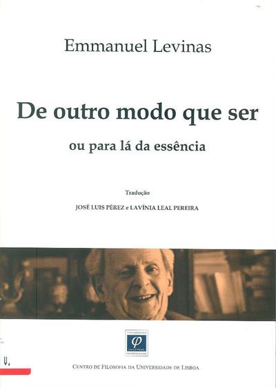 De outro modo que ser ou para lá da essência 25,00 € Desconto de %. IVA incluído. Partilhar Comprar Contactar De outro modo que ser ou para lá da essênciaEmmanuel Lévinas trad. José Luis Pérez, Lavínia Leal Pereira rev. Cristina Beckert Centro de Filosofia da Universidade de Lisboa, 2011 198 pp. Tags centro de filosofia ulemmanuel lévinas2011filosofia Características