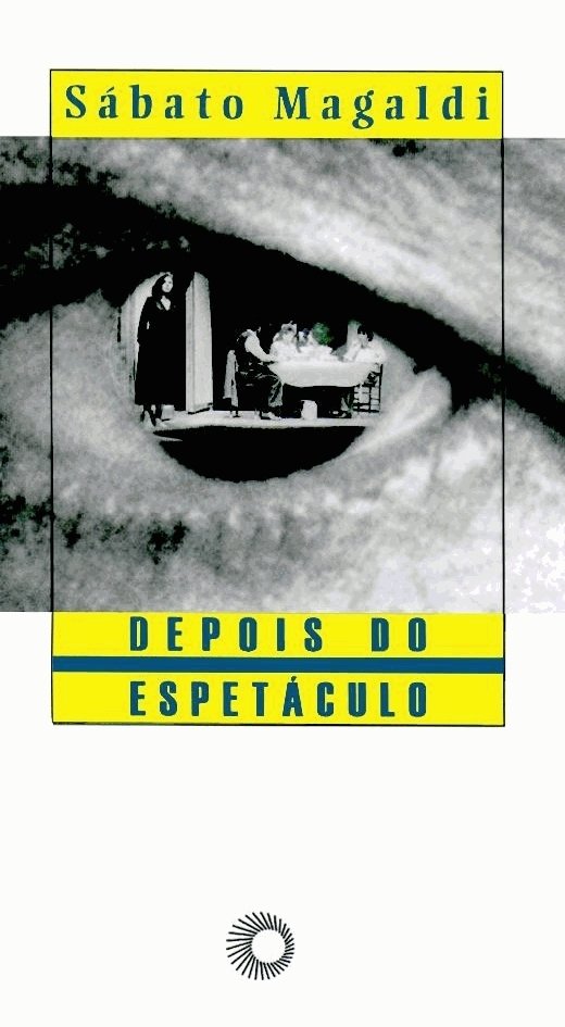 Capa de livro Depois do Espetáculo com olho humano e cena teatral refletida