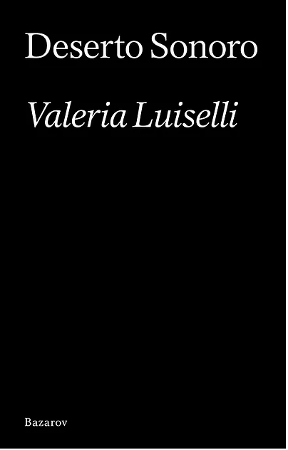 • Capa de livro preta com texto branco Deserto Sonoro de Valeria Luiselli