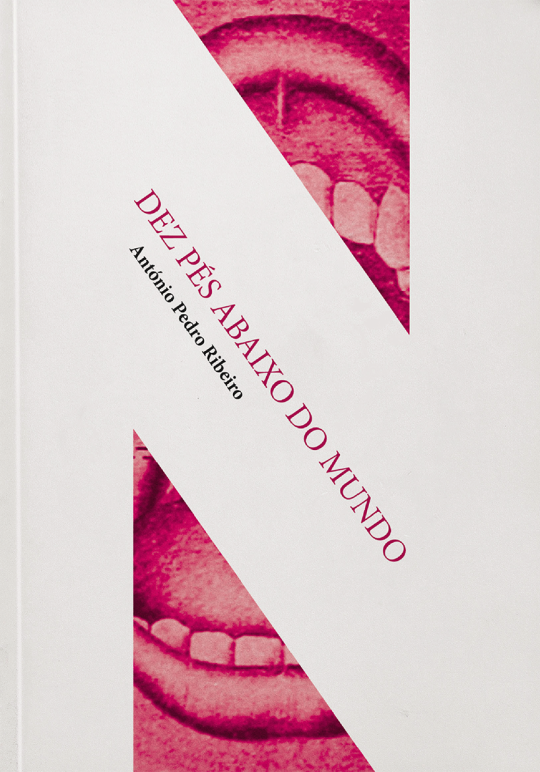 • Capa de livro branco com imagens de boca aberta em tom vermelho e texto diagonal