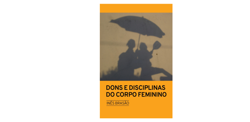 • Capa de livro Dons e Disciplinas do Corpo Feminino com imagem em sépia de duas pessoas e guarda-chuva