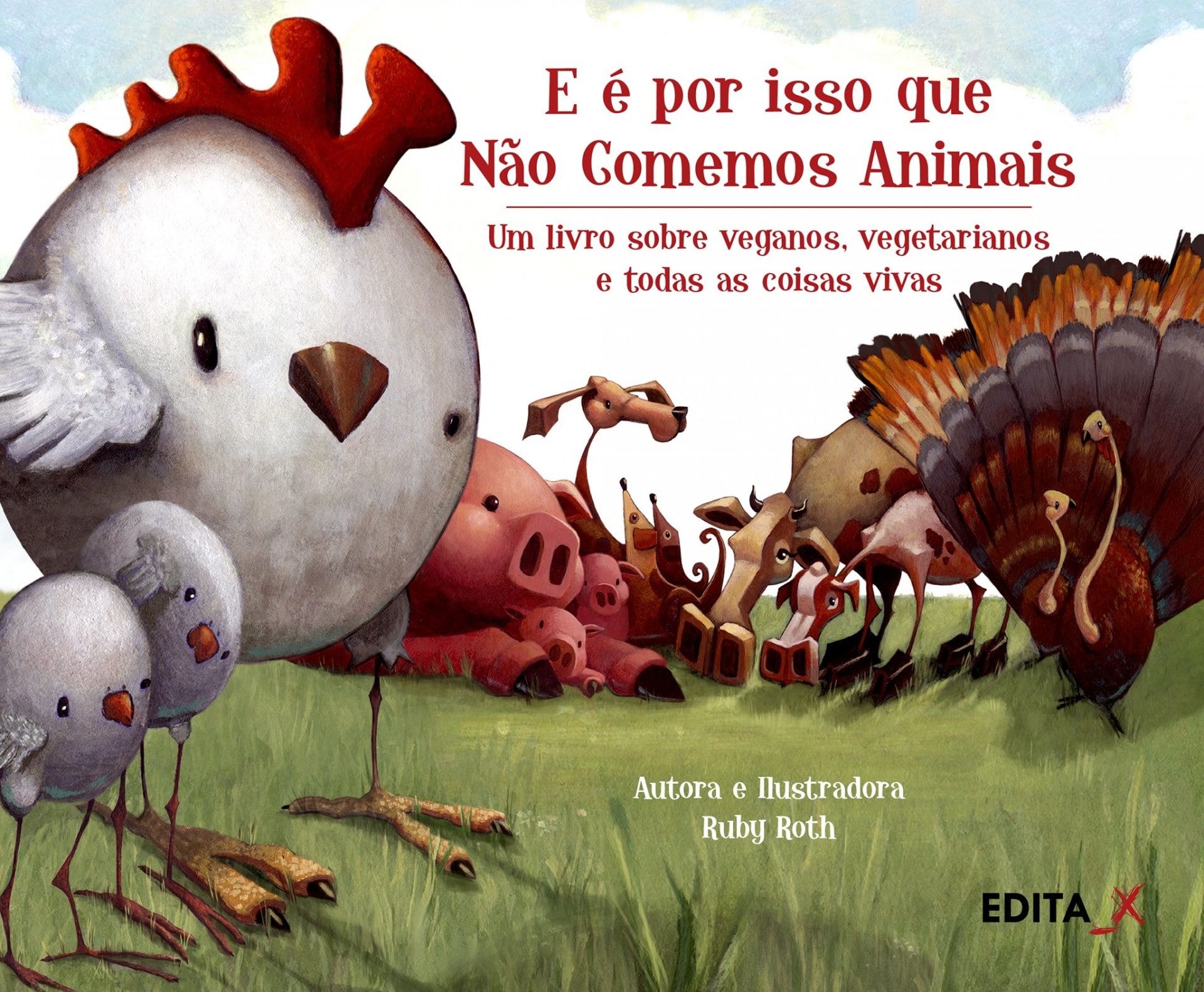 E é por isso que Não Comemos Animais utiliza verdadeiras obras de arte coloridas e textos dinâmicos para apresentar o veganismo aos primeiros leitores (dos seis aos dez anos). Escrito e ilustrado por Ruby Roth, o livro apresenta um elenco adorável de animais: porcos, perus, vacas, codornizes, tartarugas, golfinhos, entre outros. Os animais são apresentados, por um lado, no seu estado natural (unidos, aconchegados, cuidando uns dos outros e das suas famílias de acordo com os seus instintos e rituais) e, por outro, nas terríveis condições da produção industrial. São descritos ainda os efeitos negativos da alimentação à base de carne sobre o meio ambiente. No final, temos uma secção intitulada “O que mais podemos fazer?”, na qual são dadas algumas sugestões para que as crianças possam aprender mais sobre o veganismo. Trata-se de um livro informativo, repleto de empatia, que oferece uma leitura divertida e um recurso para inspirar pais e filhos a conversar sobre um assunto oportuno e cada vez mais importante.