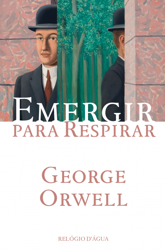 • Capa de livro com dois homens de chapéu-coco e texto 'EMERGIR PARA RESPIRAR George Orwell'.