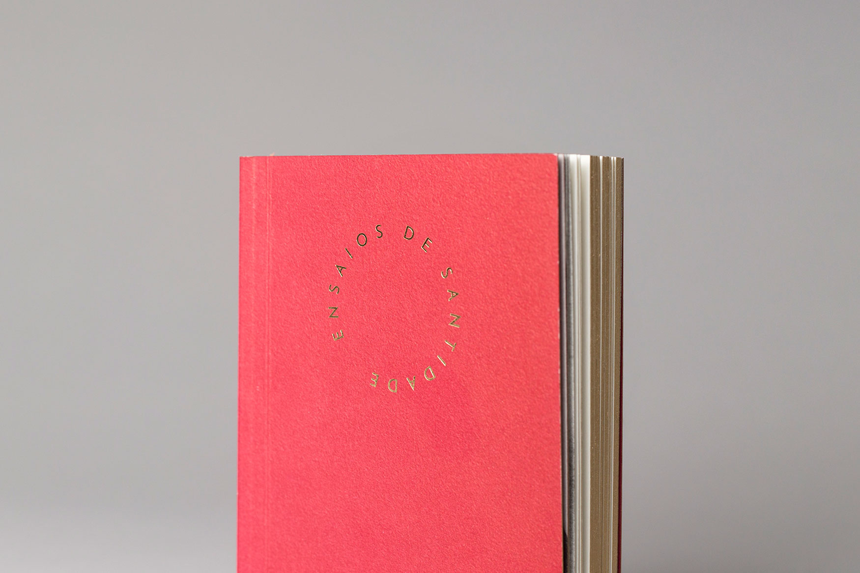 Livro capa dura vermelha com título dourado em círculo