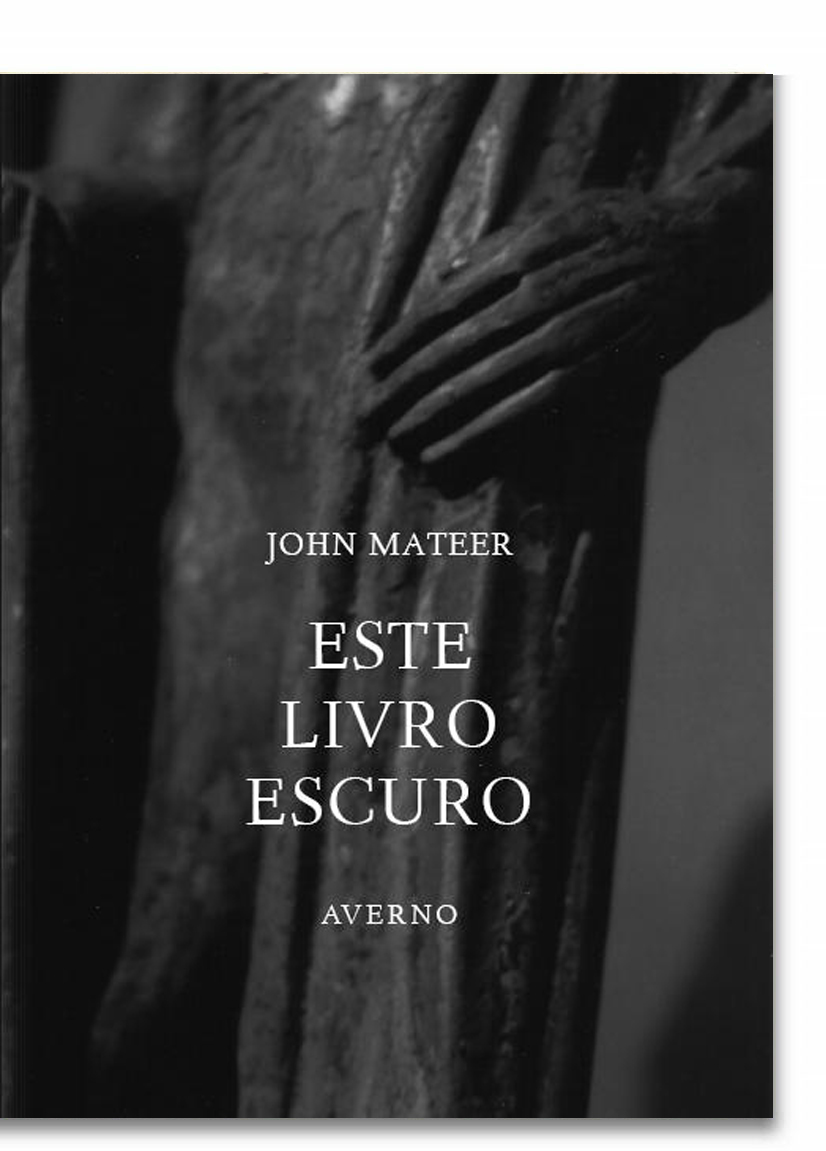 • Capa de livro escuro com título em branco e estátua texturizada ao fundo.