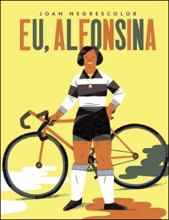 • Capa de livro 'EU, ALFONSINA' com mulher e bicicleta