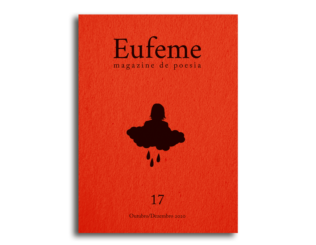 • Revista Eufeme de poesia com capa vermelha, ilustração preta e texto preto.