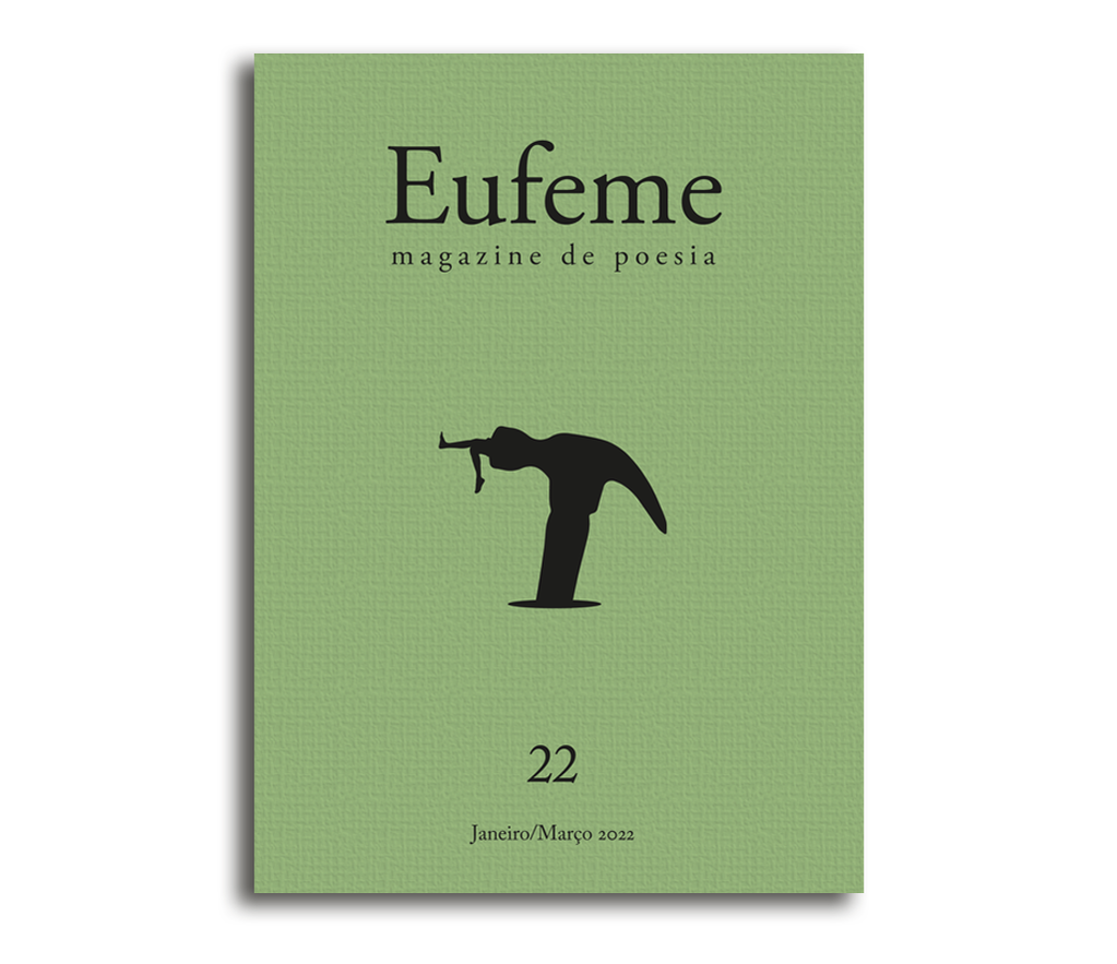Capa verde da revista Eufeme com ilustração preta de figura masculina e texto editorial