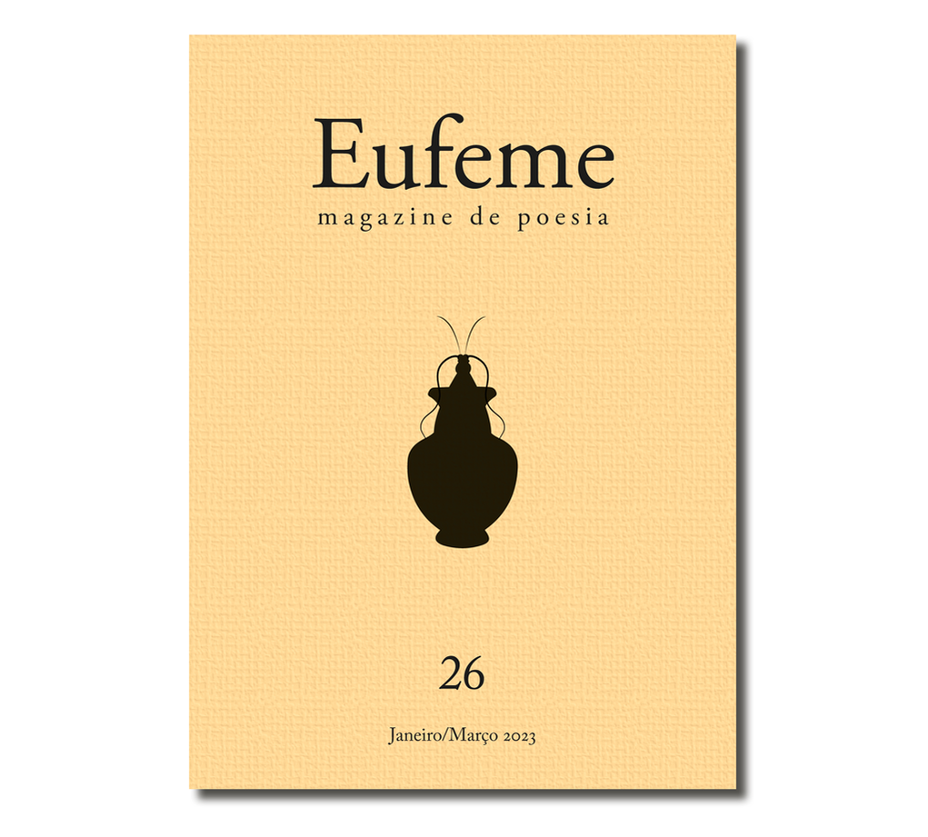 • Capa da revista Eufeme com fundo bege e texto preto, edição 26, Janeiro/Março 2023