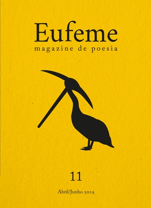 • Capa de revista Eufeme cor amarela com pássaro preto e texto