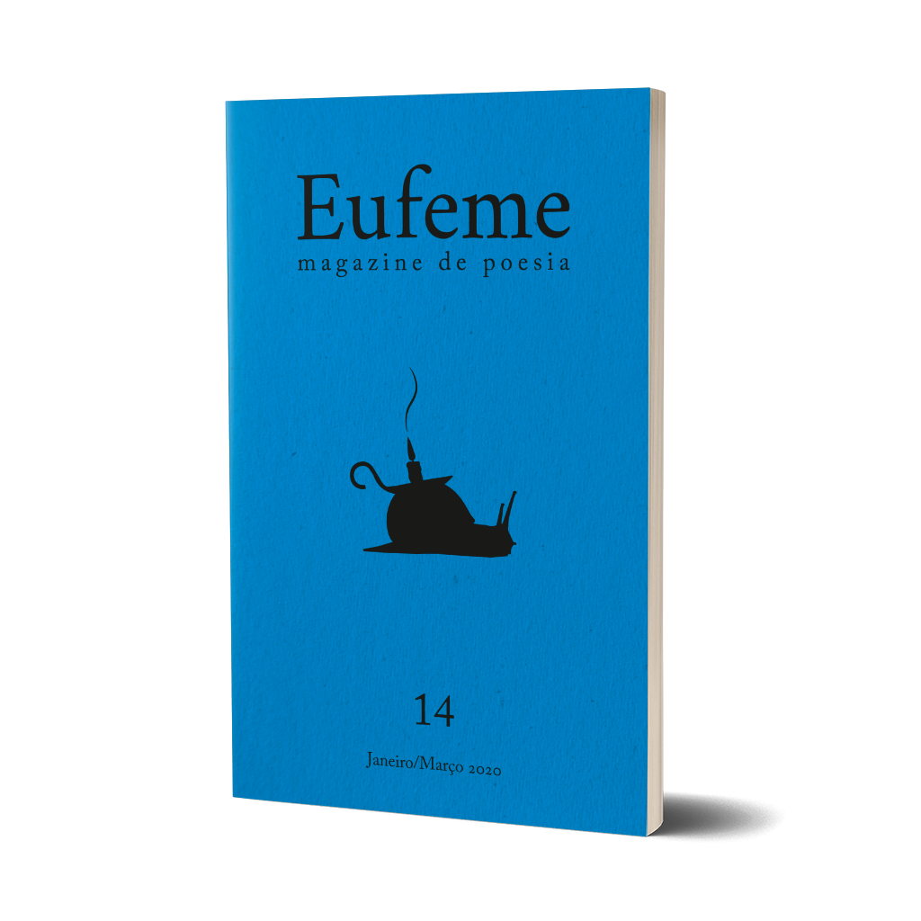 Eufeme nº14 7,00 € Desconto de %. IVA incluído. Partilhar Comprar Contactar Eufeme n.º 14 (Jan/Mar 2020) 104 p.145x200mm Esta edição conta com a participação dos poetas: Alfredo Ferreiro Salgueiro; Catarina da Costa; Eduardo Quina; Fady Joudah (trad. Sérgio Ninguém); José Manuel Teixeira da Silva; Lena Khalaf Tuffaha (trad. Sérgio Ninguém); Maria Quintans; Silva Trstenjak (trad. Sérgio Ninguém); Vítor Pais; Yvette K. Centeno (Poetas&Poetas) e Rui Tinoco (Khroniká).