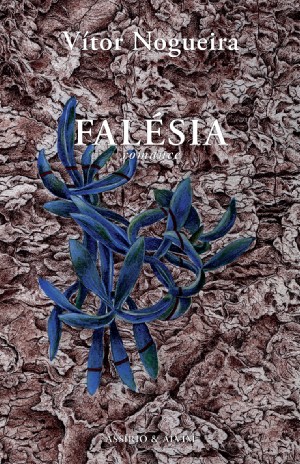 Capa de livro texturizada com título, autor e ilustração de plantas azuis