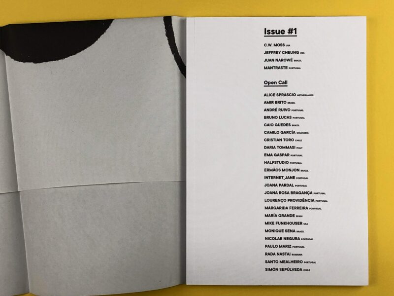 Alice Sprascio (Netherlands), Amir Brito (Brazil), André Ruivo (Portugal), Bruno Lucas (Portugal), Caio Guedes (Brazil), Camilo Garcia (Colombia), Christian Toro (Chile), Daria Tommasi (Italy), Ema Gaspar (Portugal), Halfstudio (Portugal), Ermãos Monjon (Brazil), Joana Bettencourt (Portugal), Joana Pardal (Portugal), Joana Rosa Bragança (Portugal), Lourenço Providência (Portugal), Margarida Ferreira (Portugal), Maria Grande (Spain), Mike Funkhouser (USA), Monique Sena (Brazil), Nicolae Negura (Portugal), Paulo Mariz (Portugal), Rada Nastai (Deutschland), Santo Mealheiro (Portugal), Simón Sepúlveda (Chile)