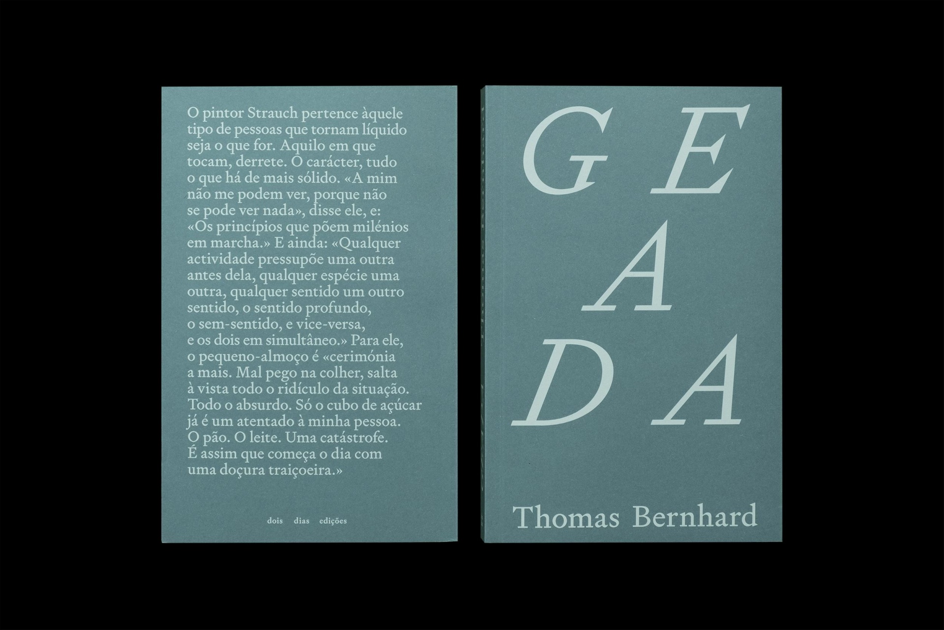 Relato de surpreendente robustez e de latente lirismo, Geada (1963) representou a revelação de Thomas Bernhard como um dos grandes escritores do século XX. Um perturbante e isolado vale austríaco, camuflado por uma geada permanente, e a ligação de um estudante de medicina a um pintor aí recolhido há vinte anos numa incessante degradação mental, são os bastidores que sustentam as observações e reflexões sobre a morte, a solidão, a velhice, a educação, a arte e a pobreza (da condição humana, de espírito), que vão percorrendo o romance, e que, aparentemente desconexas entre si, formam um sistema coerente que se confronta permanentemente com a nossa incapacidade de submeter o mundo a um processo de racionalização.