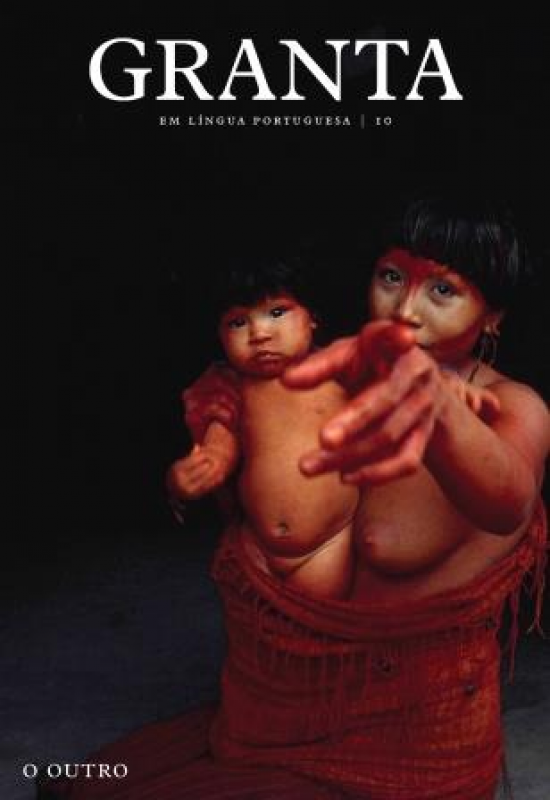• Capa da revista GRANTA com duas pessoas indígenas com pintura facial e tecido vermelho