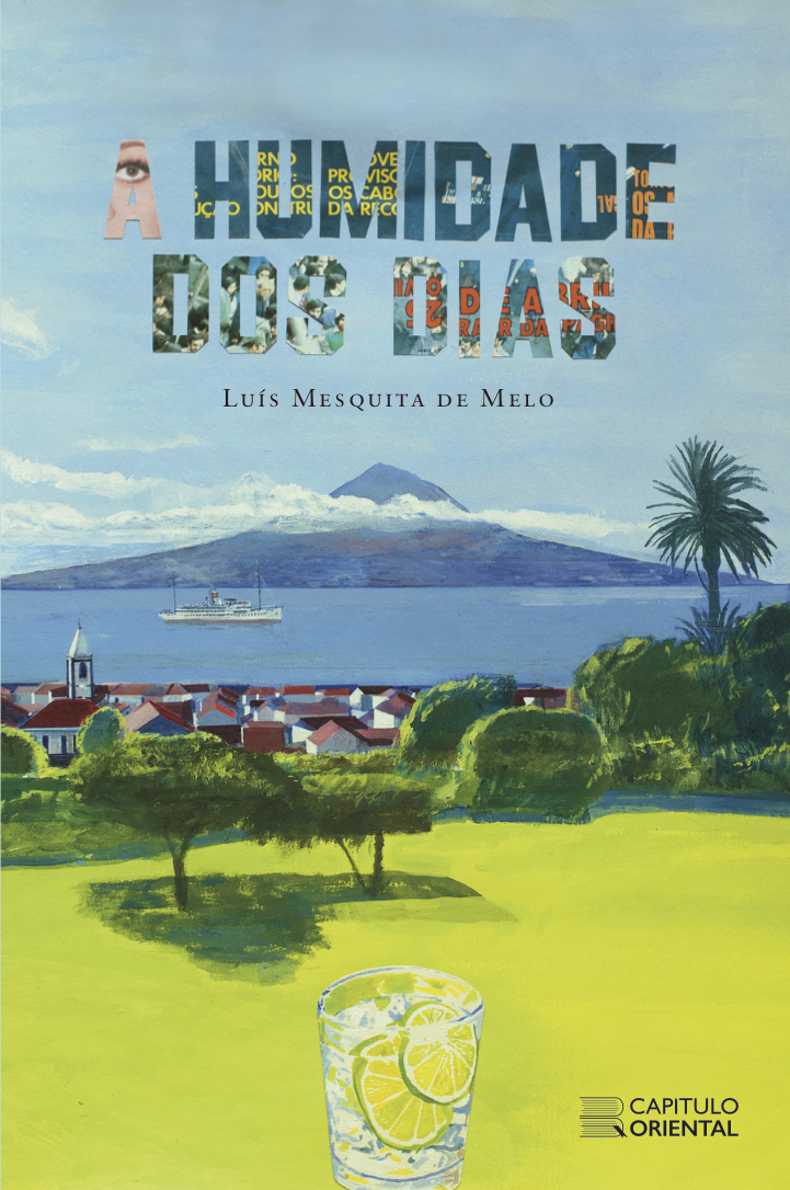 Capa de livro com título e ilustração de paisagem marítima e copo com limão.