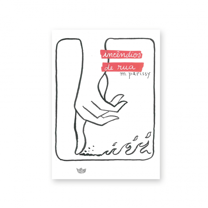 Capa de livro com ilustração de mão e fogo com texto 'incêndios de rua m. parissy'