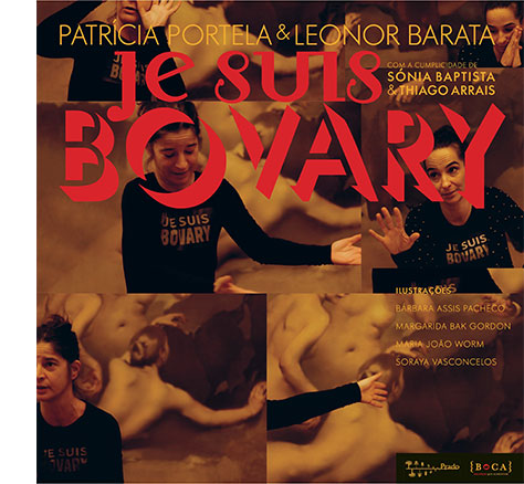 • Cartaz promocional com múltiplas fotos de mulher com camisola preta a dizer 'JE SUIS BOVARY' em letras vermelhas