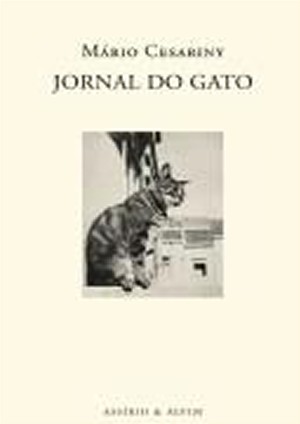 • Capa de livro 'JORNAL DO GATO' de Mário Cesariny com fotografia a preto e branco de um gato sentado