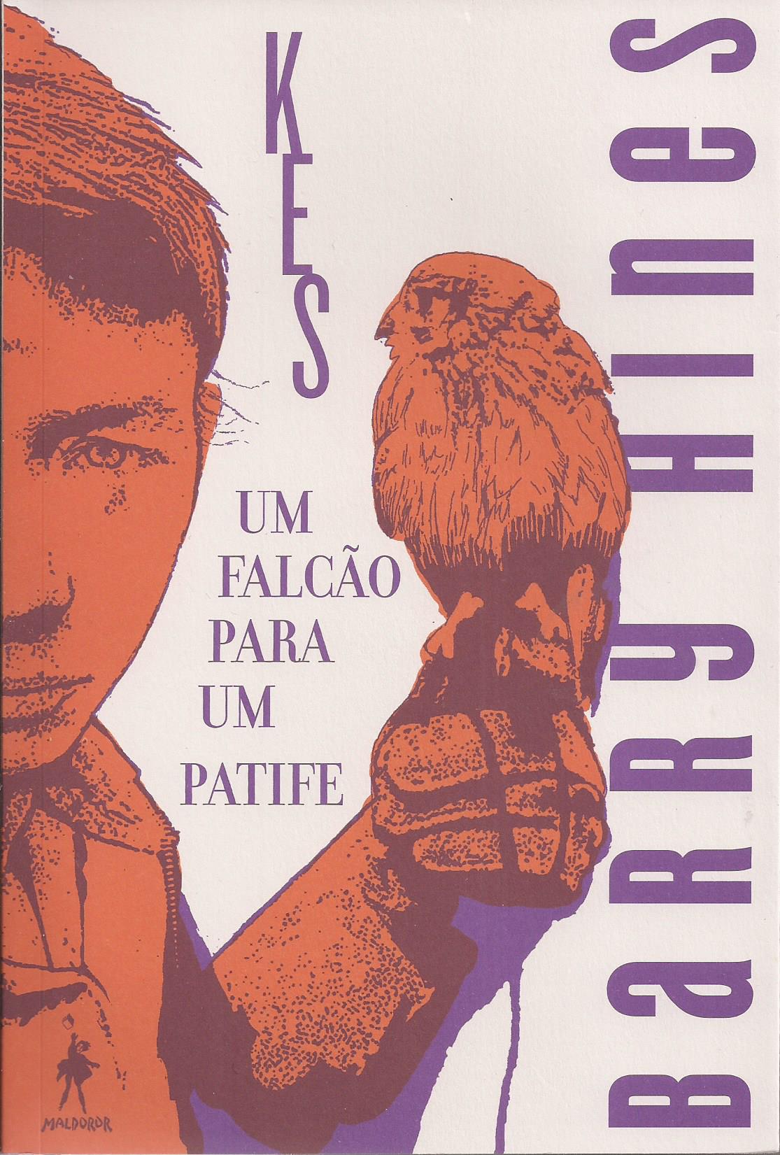 • Capa de livro com ilustração de rapaz e falcão, texto KES BARRY HINES UM FALCÃO PARA UM PATIFE